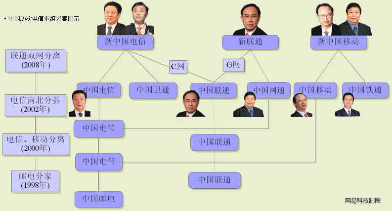 ● 中國電信南北拆分 2001年11月,國務院批準《電信體制改革方案》,對固定電信企業進行重組整合,2002年5月16日,中國電信集團公司和中國網絡通信集團公司掛牌成立。 |